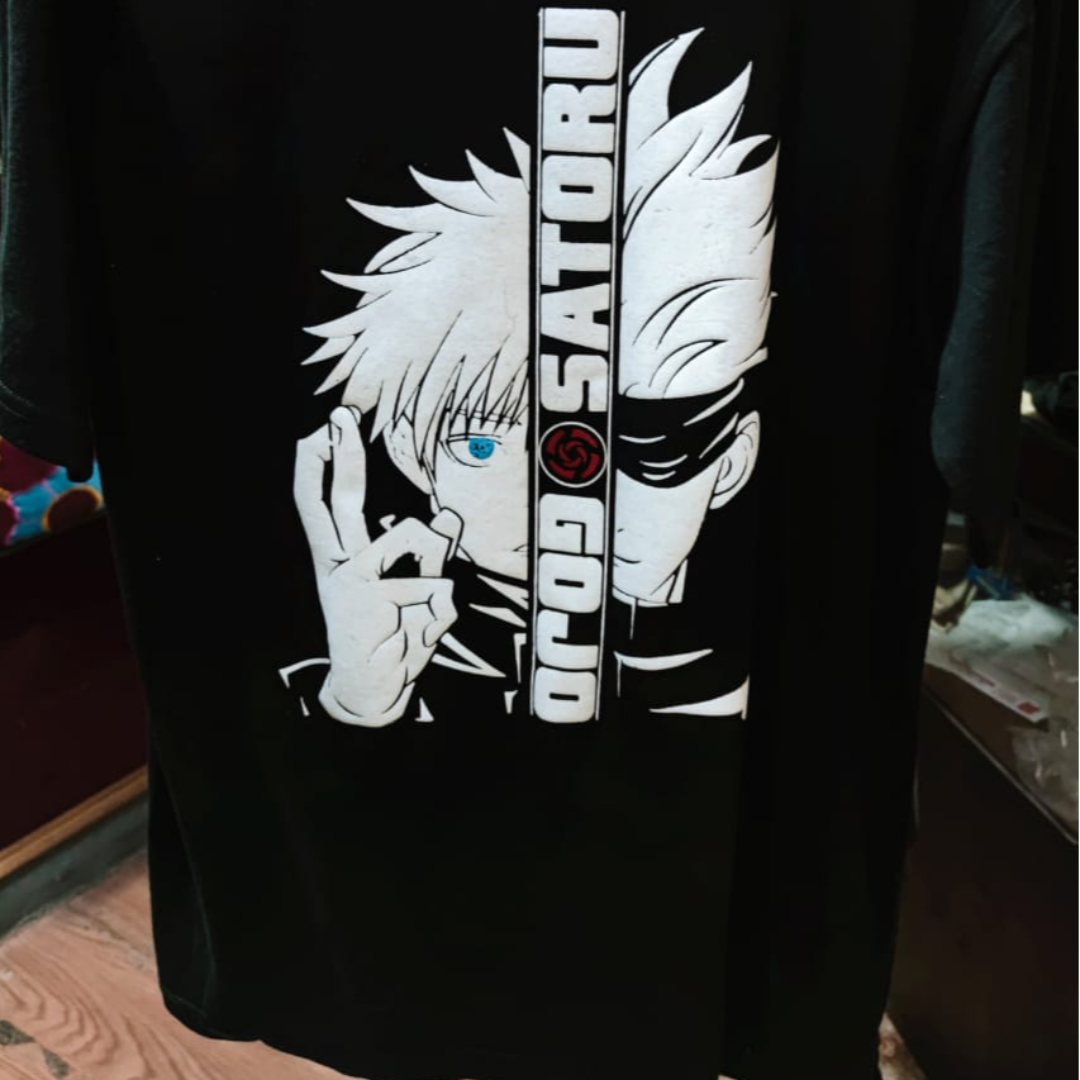 Unleash the power of Jujutsu with our Gojo Satoru T-shirt! Featuring bold and stylish graphics inspired by the popular anime series, Jujutsu Kaisen, this T-shirt is perfect for any fan of the powerful sorcerer. Made from high-quality, breathable fabric, it's comfortable to wear all day long, With a flattering fit and durable construction, this T-shirt is perfect for adding a touch of anime style to your everyday wardrobe.